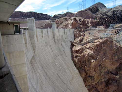 Looking over the back of the dam at Lake Mead. Buried deep below the surface are still the railroad tracks and even railcars that were used to build the dam.