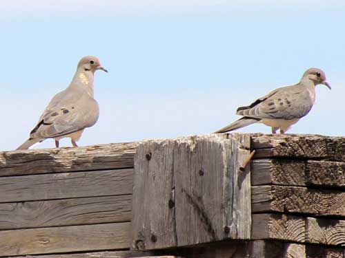 A couple of locals. Mourning doves (also known as turtle doves) are one of the most abundant and widespread birds of North America. Males and females are similar in appearance, with both parents helping to raise the young.