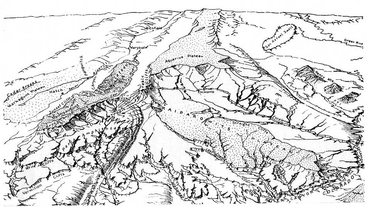 A map filled with names we were now familiar with... Hatch, Paunsaugunt Plateau, Bryce Canyon, Escalante, Aquarius Plateau (click for a larger view)