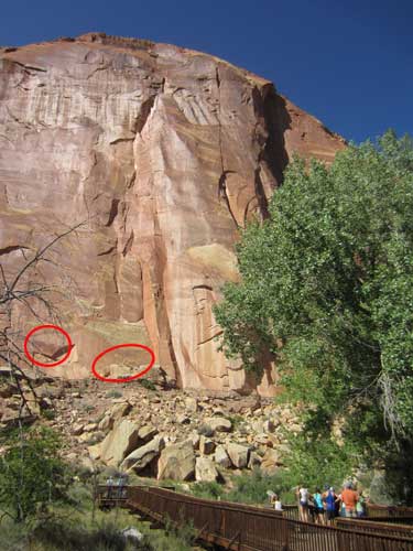 In early 1952, some large petroglyphs were destroyed by a natural rockfall. Before (left) and after.