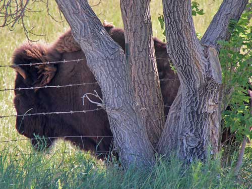 Bison are native to southern Utah and this area. At one time, as many as 50 million animals roamed North America. By the late 1800's, they had been hunted to near extinction, except for the Yellowstone Park herd. Bison from that herd were reintroduced back into this area in the 1940's, settling mostly in the grasslands near the Henry Mountains (only about 25 miles from here). Although the mountain is capable of supporting up to 400 bison, the state tries to keep the population around 325. As a result, this is the only huntable free-roaming herd in the US.