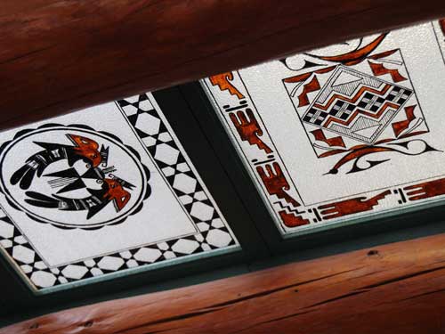 The skylight panels were hand-painted by CCC workers based on prehistoric pottery designs.