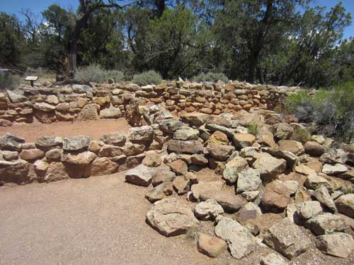 This ruin is one of 4,300 archeological sites recorded within Grand Canyon National Park. The plaza faces south to take advantage of the warmth of the low winter sun. It also provided a view of the distant sacred mountains.