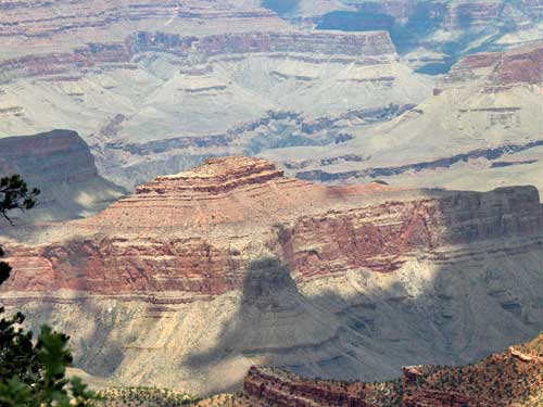 In 1890, prospector Pete Berry staked the Last Chance copper claim some 3,000 feet below us on Horseshoe Mesa. The mine survived for a while, but eventually the high cost of hauling it up to the rim and then shipping it to Texas proved to be its doom. But the gateway had been opened for tourism, which took root in 1893, first with crude lodgings then in 1897 with the two-story log Grandview Hotel run by miner-turned-hotel-manager Berry. It was a 12-hour jarring stagecoach ride to get here from Flagstaff, but the reward was a mule ride down into the canyon (and the grand view, of course). Grandview's success ended when the railroad built a line to Grand Canyon Village (11 miles away) in 1901.