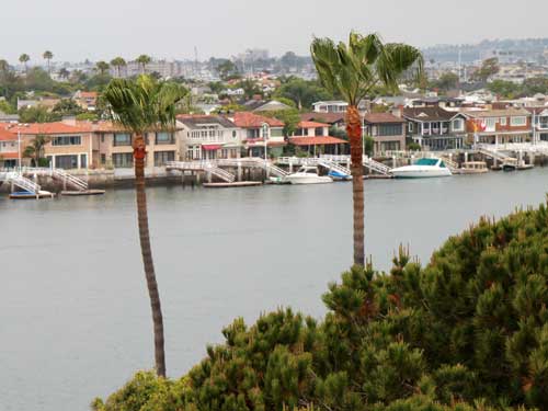 Overlooking Newport Harbor and the southern tip of the Balboa Peninsula. The beach down below was used to film some scenes from Gilligan's Island in the mid-1960's.