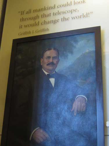 In 1896, Colonel Griffith J. Griffith donated this land to the City of Los Angeles. In his will, he also donated funds to build an observatory, exhibit hall and planetarium. His objective was to make astronomy accessible by the public, as opposed to the prevailing idea that observatories should be located on remote mountaintops and restricted to scientists.