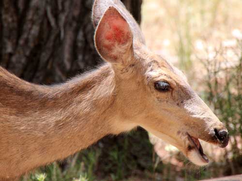 I was sitting at one of the picnic tables having a bite to eat when I noticed a couple deer grazing nearby. They seemed to completely ignore all the tourists around them. I, too, couldn't resist taking advantage of their calmness.