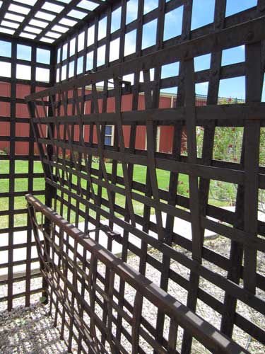 This overland stage was usually pulled by four horses and could seat 7 - 12 passengers (depending on the model). It cost about $600, which was considered cheap since other coaches ran closer to $1,100. Its light weight and durability made it very popular. It had the nickname of "mud wagon" because it was good on extremely muddy routes. This one was used during the late 1800's. There's even a bullet still lodged in its side indicating some exciting moments in its past!