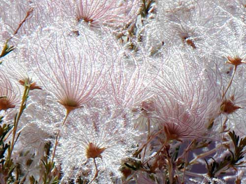 Apache Plume actually has white flowers. These are the fruit heads. The feathery, purplish tails are said to resemble Apache headdress.