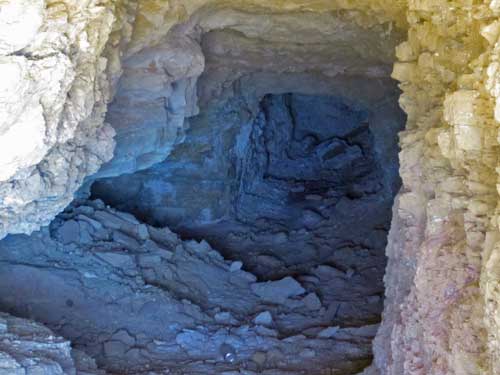In the 1920's, uranium was used in some medicines. Pieces were ground up and mixed with drinking water or packaged to put on arthritic joints to cure rheumatism and other ailments. After the development of the atom bomb and the resulting nuclear arms race, a uranium frenzy swept across the Colorado Plateau. But it wasn't really the uranium they were after, for its uses were mostly limited to a colorant in glass and ceramic glazes. Of greater interest were the traces of radium that occurred as impurities in the uranium. At the time, radium was one of the most valuable substances on the planet, worth about $80,000 per gram. Under the claim that uranium was critical to the nation's defense, the Atomic Energy Commission was given power over federal land-use agencies such as the National Park Service, and Capitol Reef National Monument was opened to rampant mining. Over 10,000 claims were filed on; shafts were dug or dynamited, and miles of road were cut. The special orders expired in 1956. That, coupled with a drop in the price of uranium as well as the discovery of larger deposits elsewhere, ended the Oyler Mine... not that it ever produced very much in the first place.