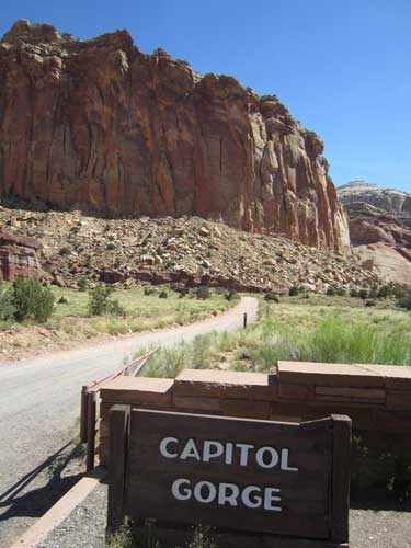 I returned to the main paved scenic drive and continued down to Capitol Gorge. It was only 10:45 am when I arrived but already quite hot. And while the hike would have been short and easy with many interesting things to see, I just wasn't in the mood for the long drive down another bumpy dirt road to get to the trailhead.