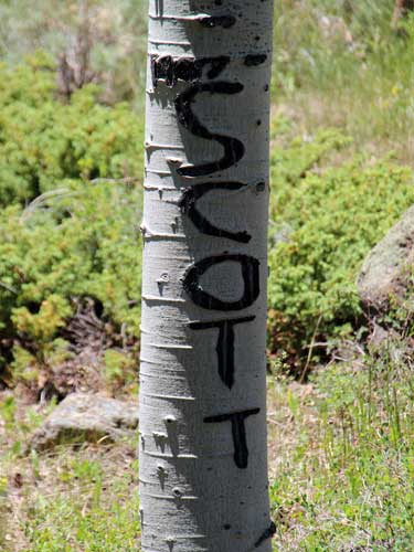 As I dillydallied at the fence, I began to look more closely at the trees... they were covered with scars! There was not a single tree left unscathed. Some had words; other had whole sentences; some wounds were old; some were brand new. It was exactly the same as back in Capitol Reef with the rocks. What was with this need to vandalize such incredible beauty!? My heart ached for each and every one of them.