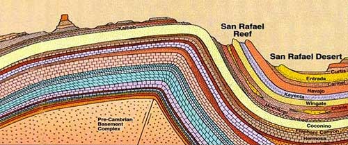 The fold is much steeper on the eastern edge, which is called the San Rafael Reef. It is criss-crossed with steep slot canyons.
