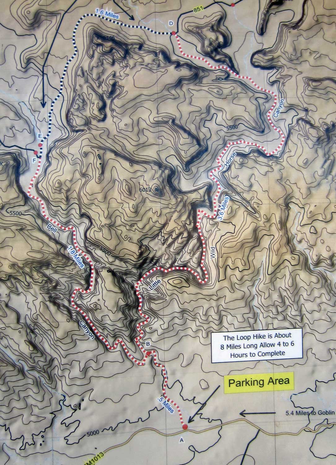 My plan was to go up Little Wild Horse, catch the Behind The Reef Road for 1.6 miles, and follow Bell Canyon back down.