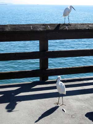 Lots of egrets loitered about, hoping for scraps from the multitude of people fishing off the pier.