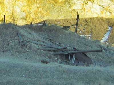 The ruins of an old mine shaft