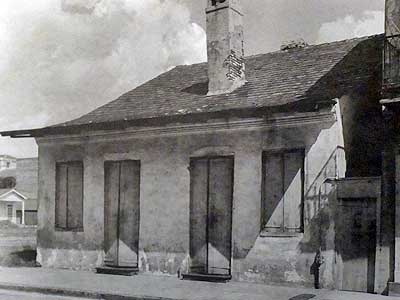 Two most popular styles of homes were Creole cottages (left) and shotgun houses (right). The simplest cottage contained four large rooms, each with two shuttered openings and interior doors connecting all of the rooms. Shotgun houses were long and narrow, with four rooms placed in a row. These compact dwellings became popular in the 1840s and were made to fit on narrow lots. The story goes that one could fire a shotgun in the front door and the bullet could pass straight out the back without hitting anything.