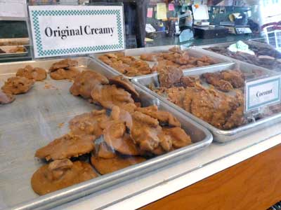 We stopped in a praline shop. The praline was a sweet candy made of almonds and a creamy, sugary caramelized coating. It arrived from France in the late 1700s. With almonds being in short supply, cooks began substituting pecans.