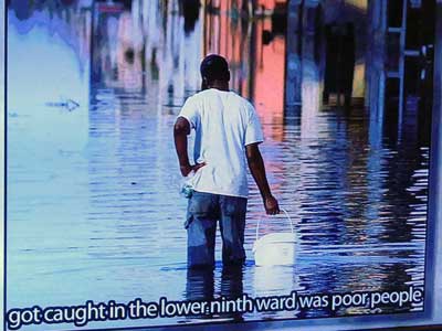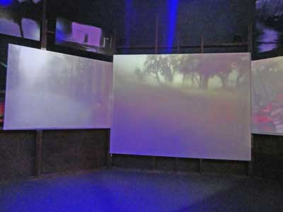 Several tv monitors scattered about played continous videos of stories told by survivors
