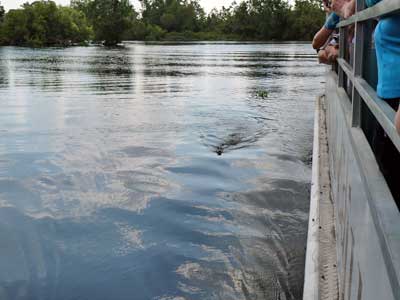 We didn't even have to get on a boat to see one! An alligator lazily drifted around the dock.