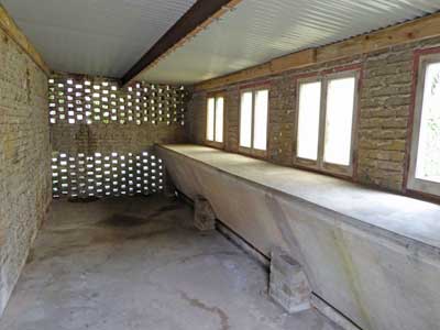 The nearly 40-foot-tall square tower in the center of the inner courtyard once housed a 3,000-gallon water tank.