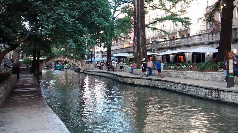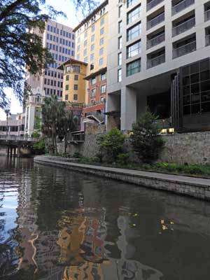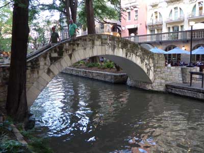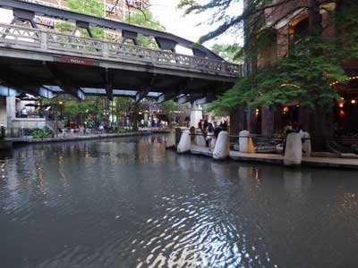 The San Antonio River has its headwaters as a grouping of springs about four miles north of here. These are fed by a massive (4,350 square miles) underground lake, the Edwards Aquifer, that is millions of years old. The river flows through the town and then down another 240 miles southeast, where it merges with the Guadalupe River and treks another 10 miles into the Gulf of Mexico.