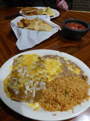 We ate at the Copper Caboose sports bar, where each table came with its own tv.
