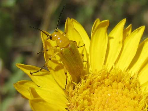 This bright yellow Blister Beetle (Zonitis sayi) is almost the exact color of this Gumweed.