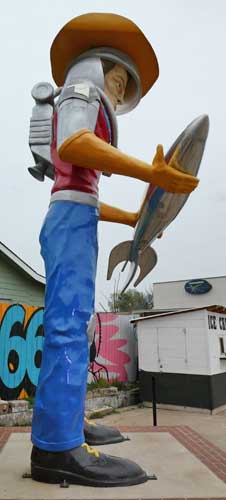 In 1962, he got a request to build a giant lumberjack which ended up at the Paul Bunyan Cafe in Flagstaff AZ. He did so (with help), but it wasn't his thing. So in 1963, he sold the business (and mold) to Steve Dashew, owner of International Fiberglass, a boat building company looking to expand during the slower production winter months. He expanded the idea from lumberjacks to anything anybody needed.