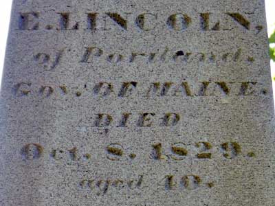 We then arrived at tomb. It was originally created for the eighth governor of Maine, Enoch Lincoln (1788 - 1829, and a distant relative of President Abraham Lincoln). He died at the age of 40, before his term in office expired. He was initially buried in the grounds that would become the park. A granite tomb was erected in 1842 to house his remains and other officials who died at the state capitol.