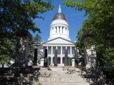 A portrait of Abraham Lincoln hangs in the Senate chamber. ... The town of Camden is one of only two places on the Atlantic seaboard where the mountains meet the sea.