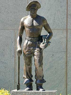 This statue was added in 2001. Identical statues can be found all over the US. It honors the young men of the Civilian Conservation Corp (CCC) from 1933 to 1942. In Maine, over 17,000 unemployed men, aged 17 to 25, were given conservation jobs in state and national parks and forests. They built roads and bridges (including in Acadia National Park), trails, tunnels, buildings, planted trees (in this Capitol Park as well) and so on . They earned $30 per month, most of which they sent back to their families. The government provided them with room, board, clothing, tools and education.