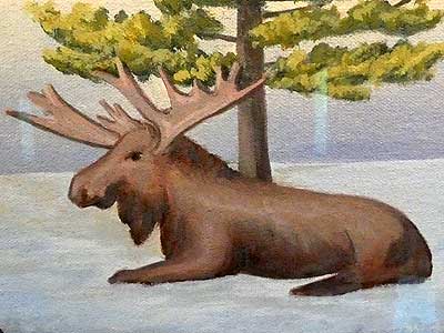 In the center on a silver shield is a white pine tree (the state tree, representing Maine's forestry and lumber industries) and a moose (the state animal, representing wilderness and natural resources).