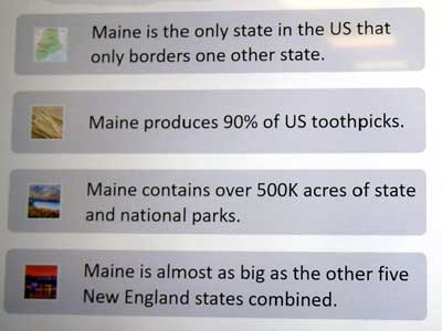 Maine produces 99% of the country's blueberries. Maine is also good for growing potatoes since its long cold winters prevent pests.