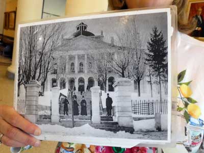 We arrived at a large park. Known as Capitol Park, it spans from the state house to the Kennebec River. It was established in 1827 with the intention of establishing a dignified setting for viewing the building. Over the years, it has served other purposes as well... including being a camp site and parade grounds during the Civil War. State law now says that there must always to be an open space in front of the capitol building.