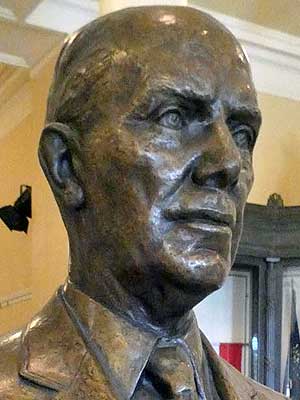 A bust of Percival Proctor Baxter, Governor of Maine from 1921 - 25. Over a 30-year period, he purchased the land for what is now Baxter State Park. He said it could never be turned into a national park.
