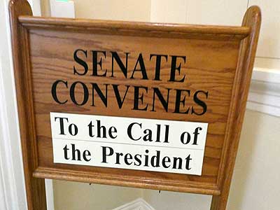 The state seal again ... The blue and gold of the carpet represent stars in the sky.