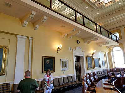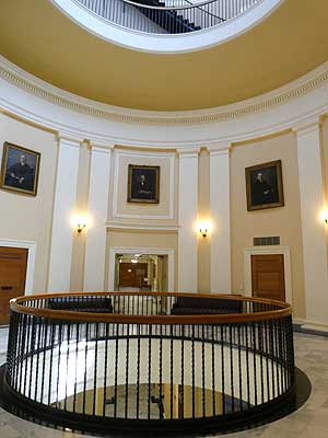 From here, one can look down as well as up another three stories at the domed ceiling.