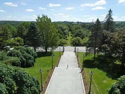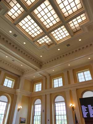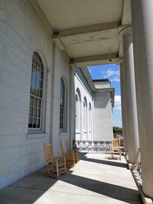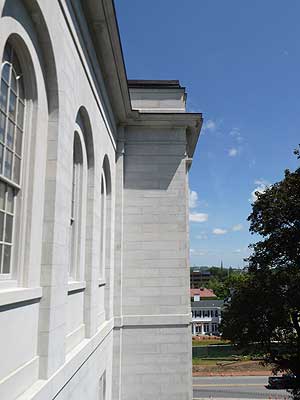 The 8 columns are made of solid granite weighing 20,000 pounds each.They were so heavy that they had to be rolled in.