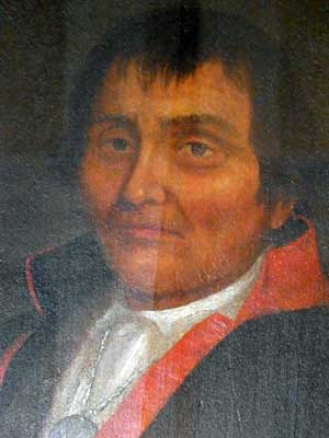 John Neptune (1767 - 1865) was Lieutenant Governor and Secondary Chief of the Penobscot Nation. Beginning in 1823, he served as an early representative. The portrait was painted on wood and has been cased in glass to preserve it.