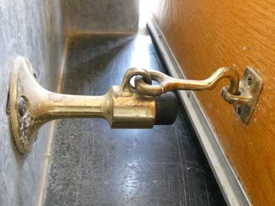 We were told that the door once used to be self locking. During a late session, some of the members accidentally got locked outside here. Even though the door can now be latched open, there is also a doorbell just in case.