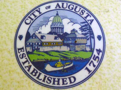 We then drove downtown. Augusta was a super small town, with a population of only 19,000 or so. We walked down Water Street in search of a place to eat. Informative signs told us of the city's history.