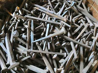 Barrels of coal and nails