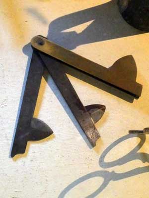 A button mold ... and a fleam (a handheld instrument used for bloodletting)