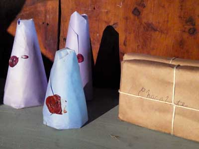 (right) Cones of sugar and a brick of chocolate