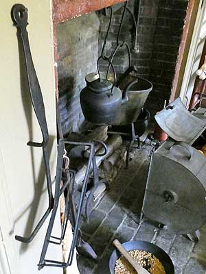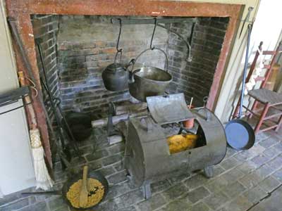 All of the kitchen appliances were on legs. This was to allow for hot coals to go underneath them. This work came with the risk of women's long skirts catching on fire.