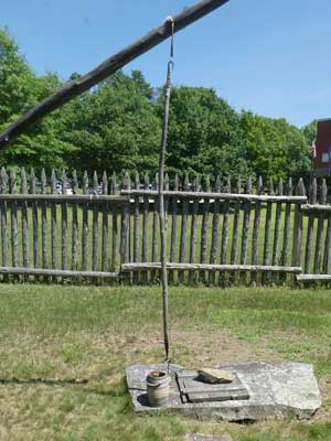 A cone of sugar plus the tongs used to break of small pieces. ... The well outside.