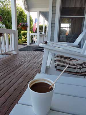 We rested on the veranda for a bit. I had made a yummy (free) hot-chocolate/decaf coffee mix.