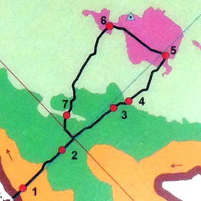 Sign 4 - The wooded shrub heath (light green) - This area is extremely infertile. The stunted trees here are actually older than the big trees we had just walked through. Plants only receive nutrients from the rain, snow and dust from the atmosphere. Most of them are evergreens, giving them a longer season for photosynthesis. Among the amazing plants found here are pitcher plants and orchids.
