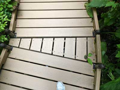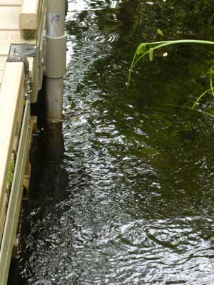 The boardwalk was not anchored in place but instead was very bouncy as we walked. It had the flexibilty to slide along poles to adjust to the constantly changing water level.